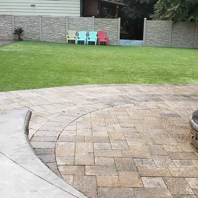 20 years warranty on patios, paths & walkways, Fire Pits, steps, Driveways, retaining walls. 10 year warranty on ARTIFICIAL GRASS & TURF